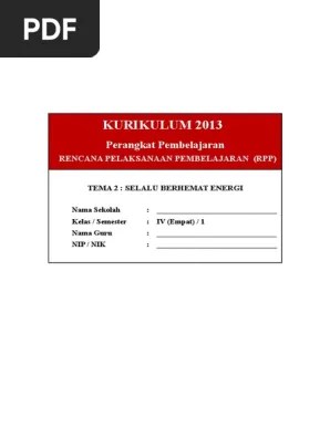 Rpp Kurikulum 2013 Kelas 4 Tema Selalu Berhemat Energi - Download Rpp 1 Lembar Kelas 4 Tema 2 Gratis Dicariguru Com - Buku guru tematik terpadu kurikulum 2013 untuk sd/mi kelas iv tema 2 selalu berhemat energi.